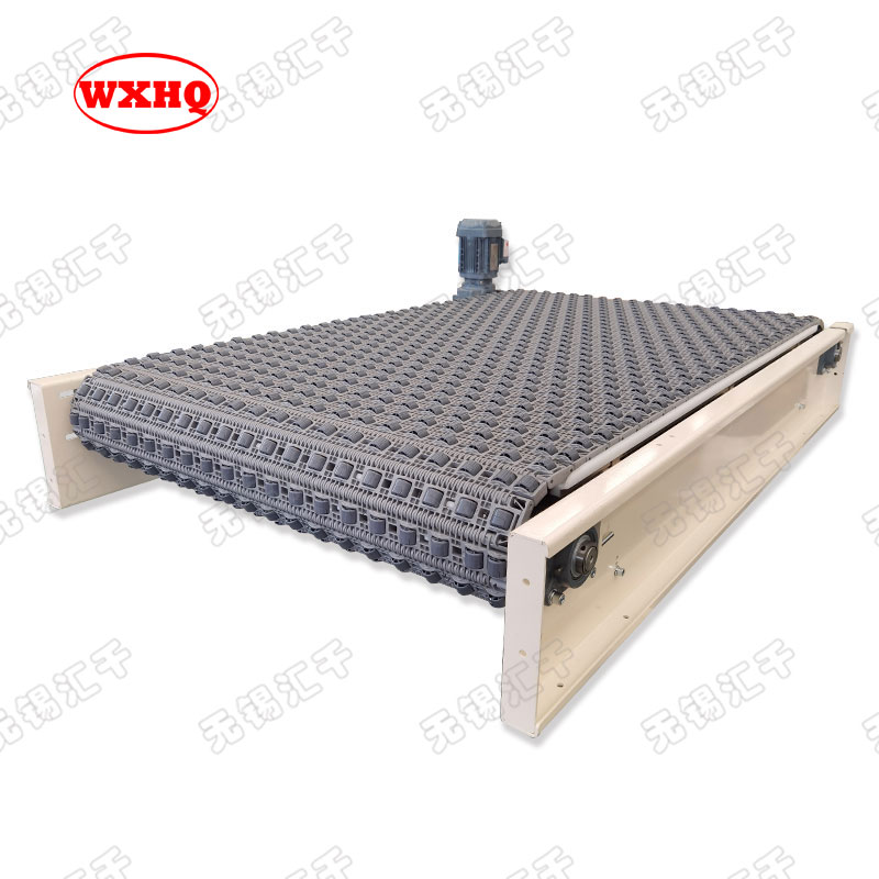 1、模組塊的組合設(shè)計 由于塑料模組輸送鏈把作為牽引構(gòu)件的牽引鏈條和支撐工件的輸送鏈板合二為一,結(jié)構(gòu)簡單,不存在鏈板和鏈條之間的鏈接。每個模組塊都是一個組成單元,可以任意更換,如有設(shè)備搬遷,幾乎所有原有設(shè)備組成部分都可以有效利用?;旧蠈崿F(xiàn)標(biāo)準(zhǔn)化設(shè)計,減少了設(shè)計工作量。